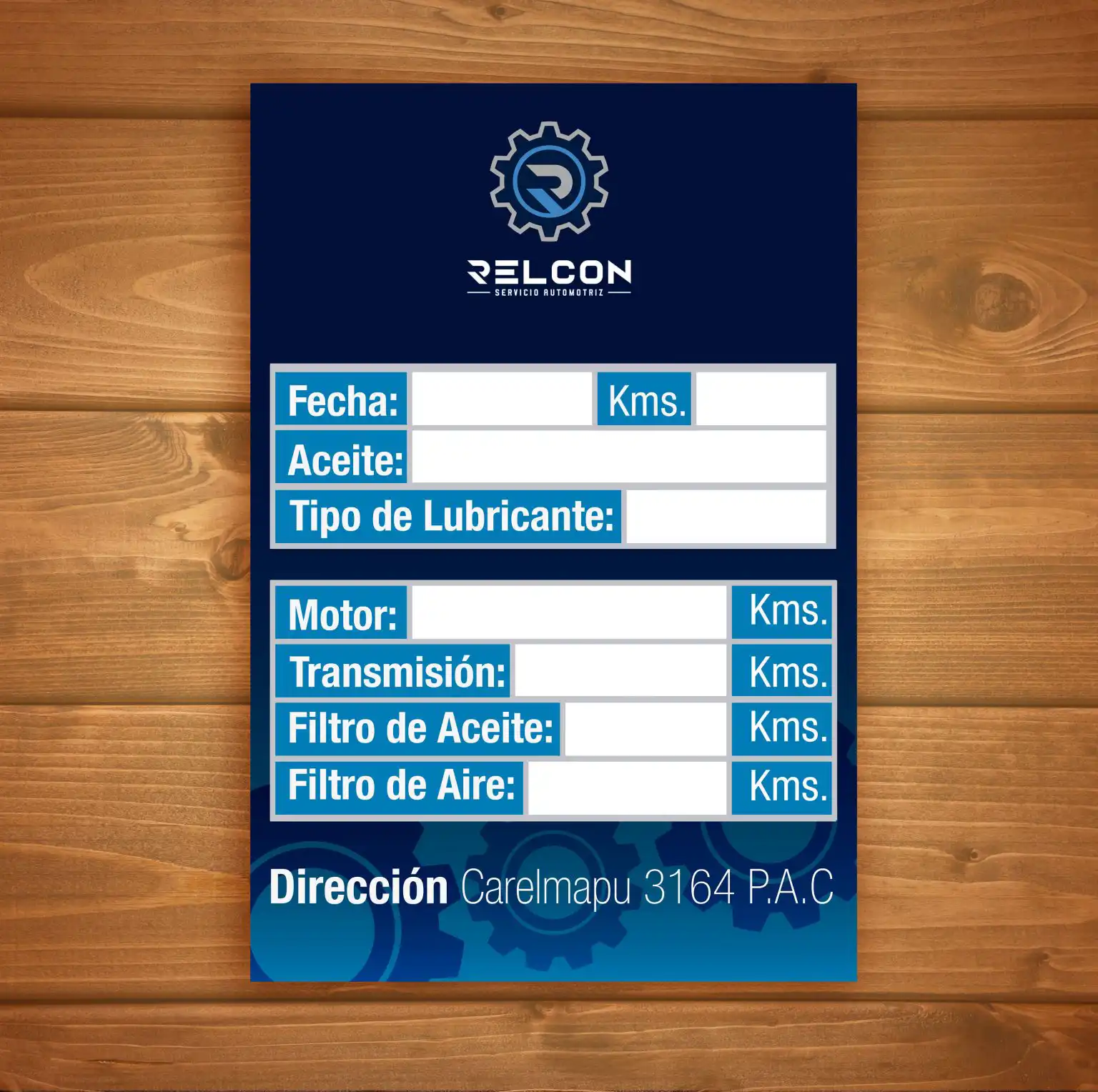 Ficha técnica para taller mecánico Relcon.