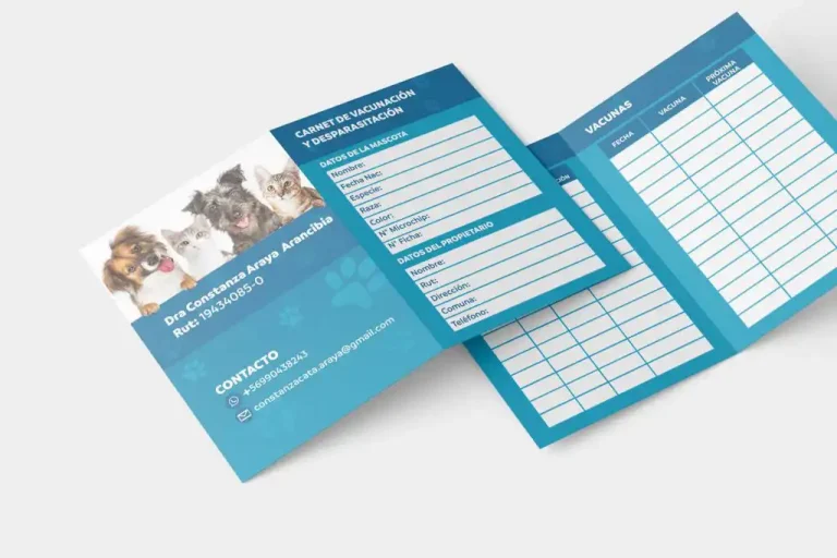 En el interior contiene información del control médico de la mascota y en la portada y contra portada la información de contacto y los datos del animal.